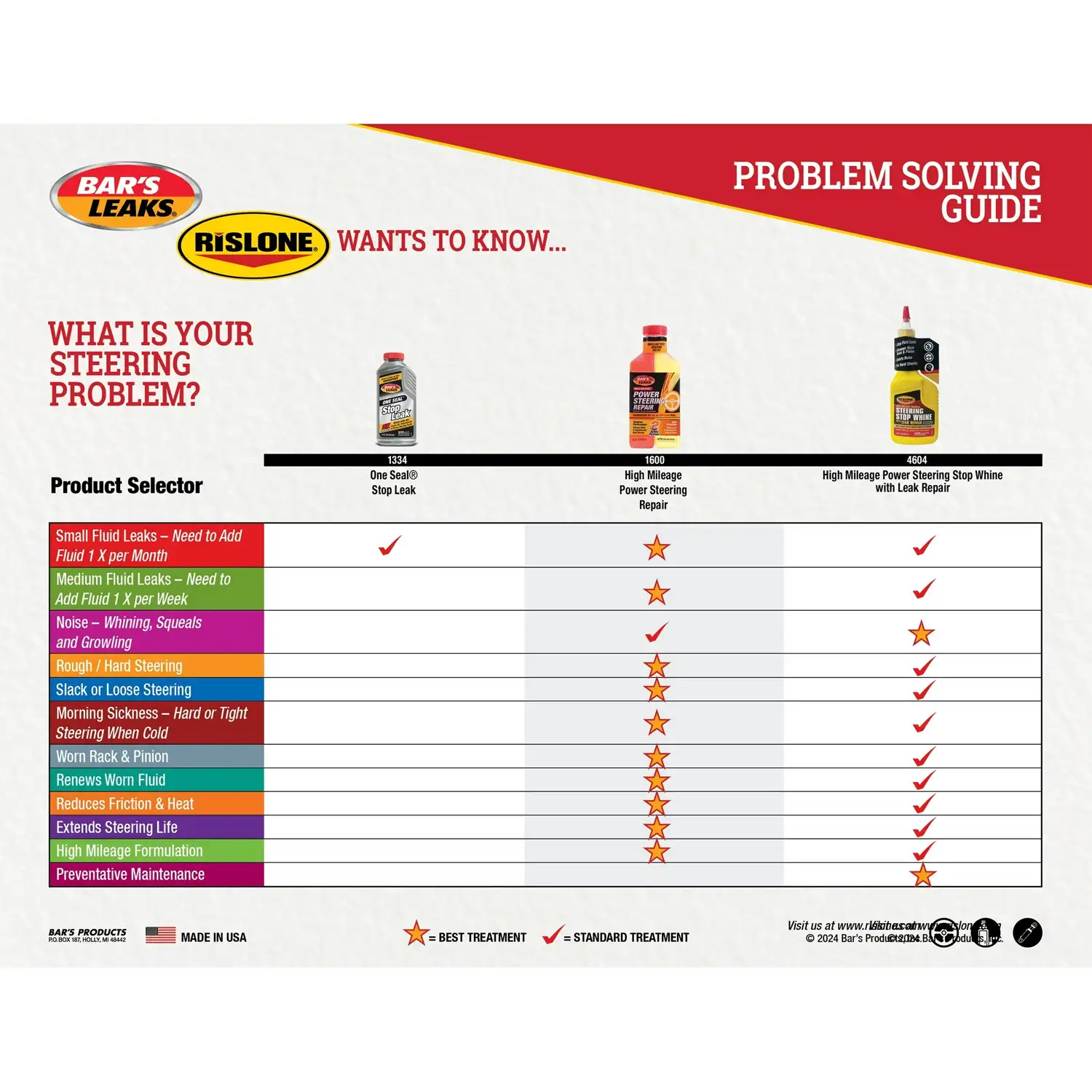 Rislone High Mileage Steering Stop Whine with Leak Repair 4604 Power Steering Fluid, 11.8 oz